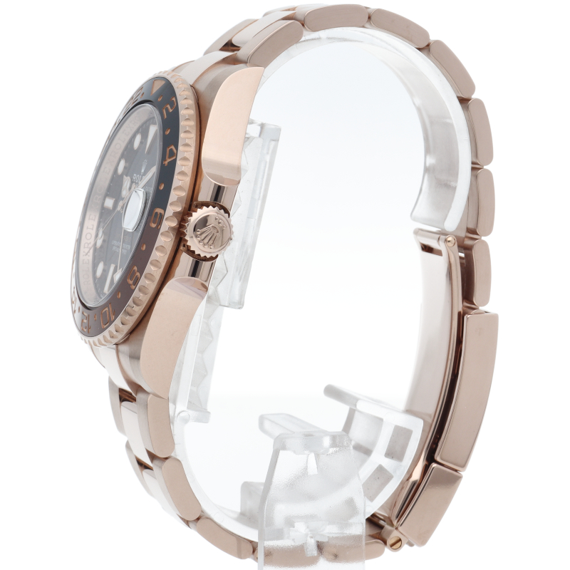セラクロムベゼルでのGMTマスター2。ロレックスの最新ムーブメント「Cal.3285」を搭載しており、エネルギー効率が最適化されたクロナジー脱進機、テンプを衝撃から守る為の耐震装置パラフレックス ショック・アブソーバそして70時間ものロングパワーリザーブとロレックスの最新技術を駆使したムーブメントになっています。