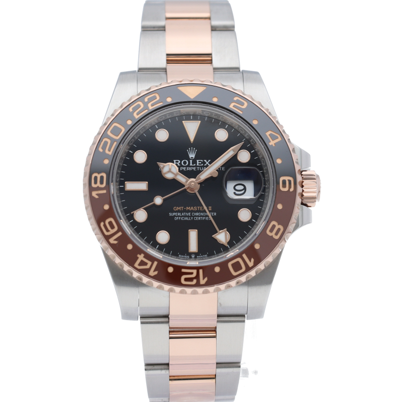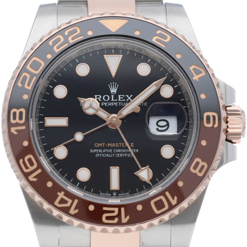 セラクロムベゼルでのGMTマスター2。ロレックスの最新ムーブメント「Cal.3285」を搭載しており、エネルギー効率が最適化されたクロナジー脱進機、テンプを衝撃から守る為の耐震装置パラフレックス ショック・アブソーバそして70時間ものロングパワーリザーブとロレックスの最新技術を駆使したムーブメントになっています。