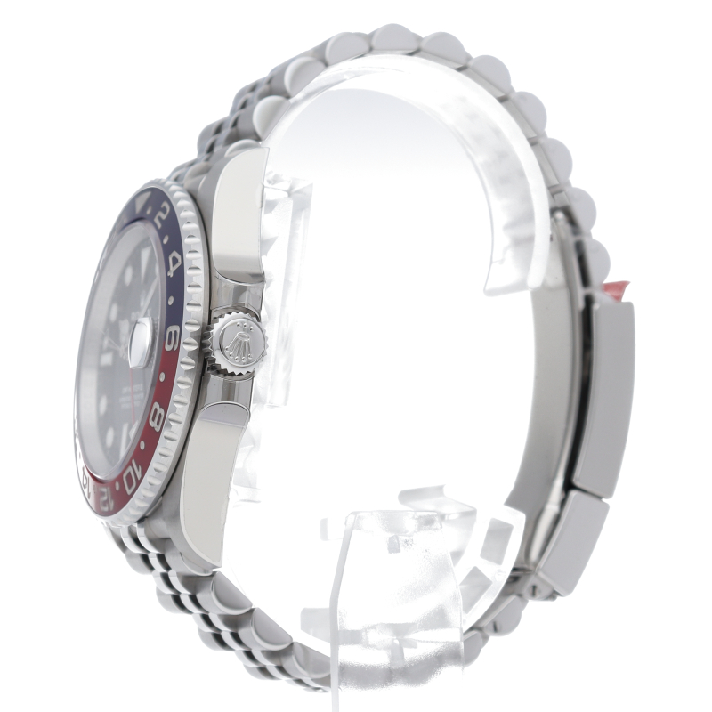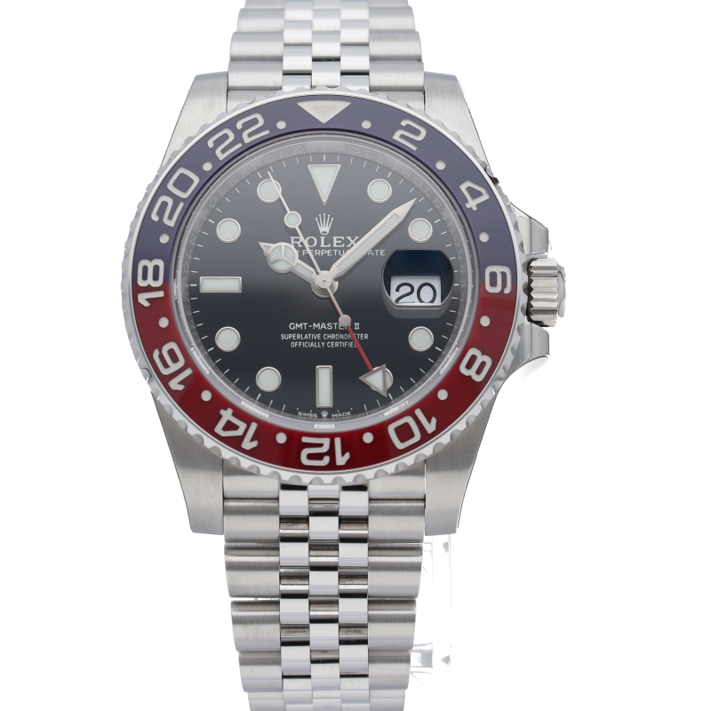 ロレックス人気モデル「GMTマスター2」のモデルチェンジした新型モデルです。セラミックベゼルにブレスやバックルも新しくなり高級感が更に増した1本です。