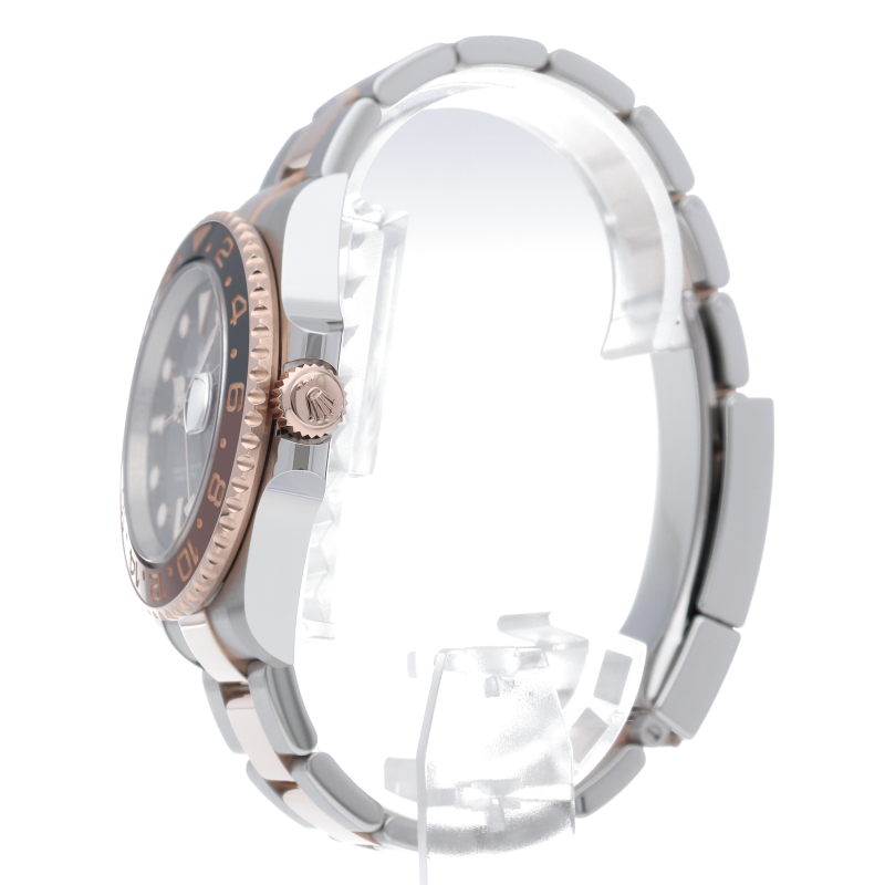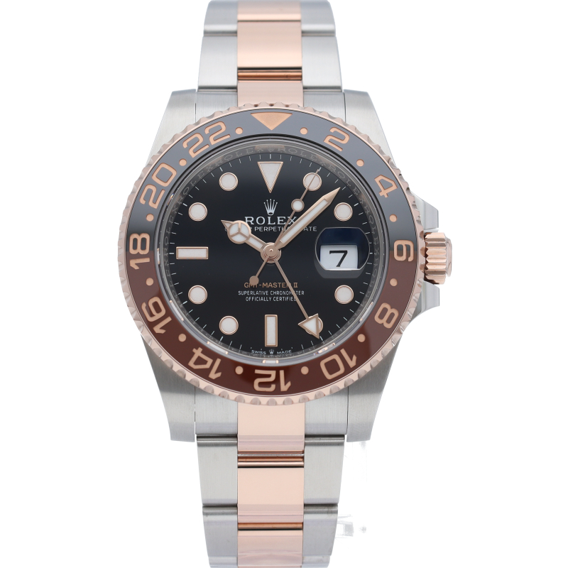 セラクロムベゼルでのGMTマスター2。ロレックスの最新ムーブメント「Cal.3285」を搭載しており、エネルギー効率が最適化されたクロナジー脱進機、テンプを衝撃から守る為の耐震装置パラフレックス ショック・アブソーバそして70時間ものロングパワーリザーブとロレックスの最新技術を駆使したムーブメントになっています。