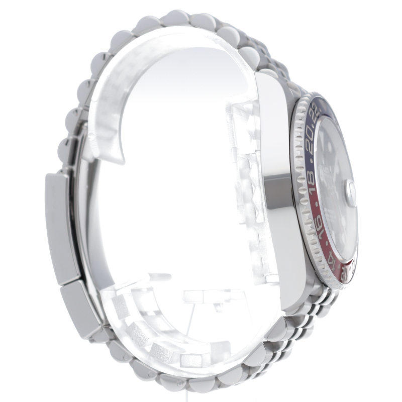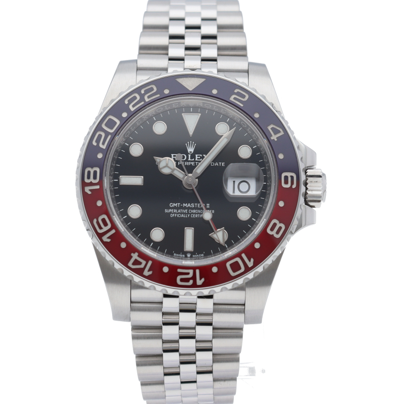 ロレックス人気モデル「GMTマスター2」のモデルチェンジした新型モデルです。セラミックベゼルにブレスやバックルも新しくなり高級感が更に増した1本です。