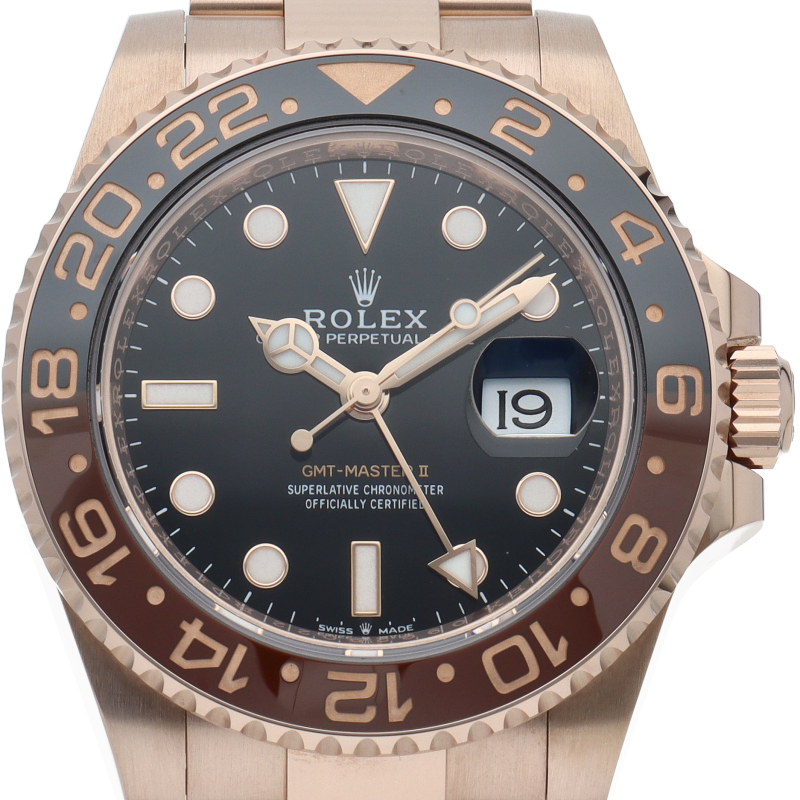 セラクロムベゼルでのGMTマスター2。ロレックスの最新ムーブメント「Cal.3285」を搭載しており、エネルギー効率が最適化されたクロナジー脱進機、テンプを衝撃から守る為の耐震装置パラフレックス ショック・アブソーバそして70時間ものロングパワーリザーブとロレックスの最新技術を駆使したムーブメントになっています。