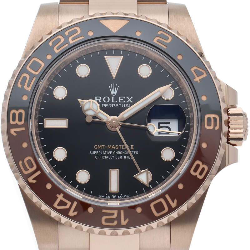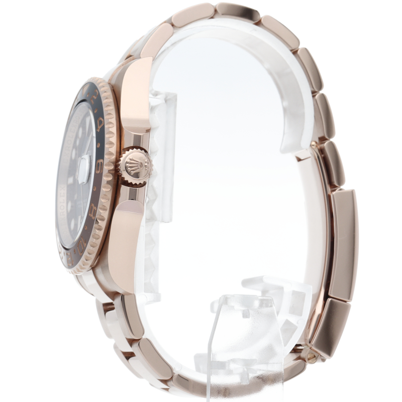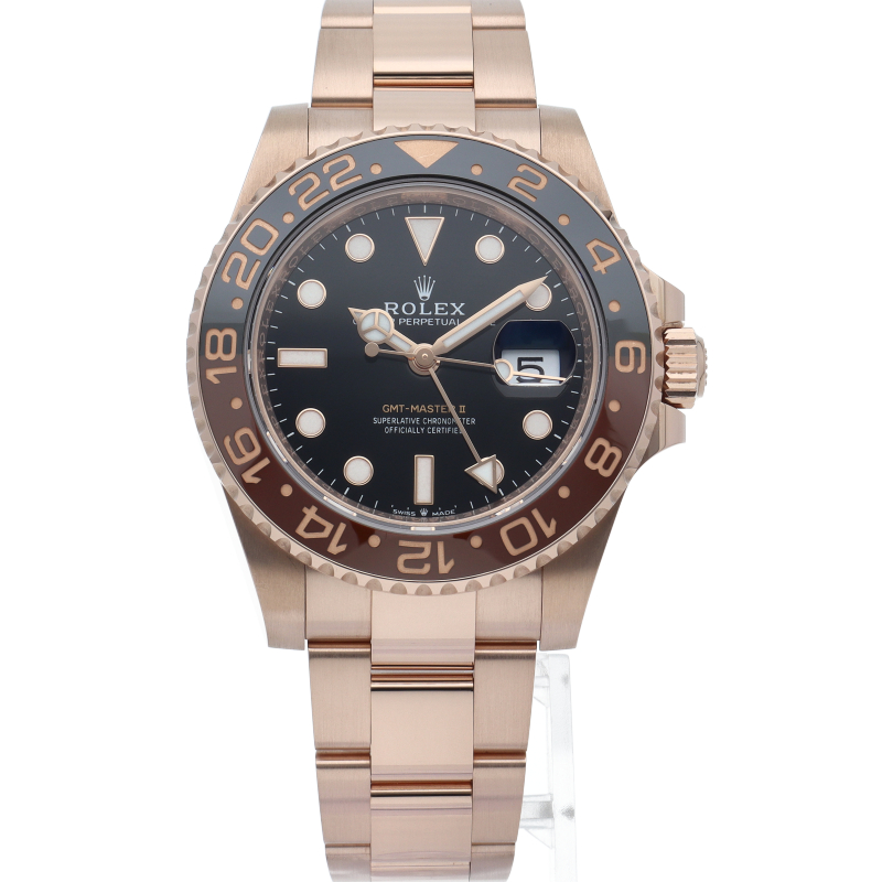 セラクロムベゼルでのGMTマスター2。ロレックスの最新ムーブメント「Cal.3285」を搭載しており、エネルギー効率が最適化されたクロナジー脱進機、テンプを衝撃から守る為の耐震装置パラフレックス ショック・アブソーバそして70時間ものロングパワーリザーブとロレックスの最新技術を駆使したムーブメントになっています。