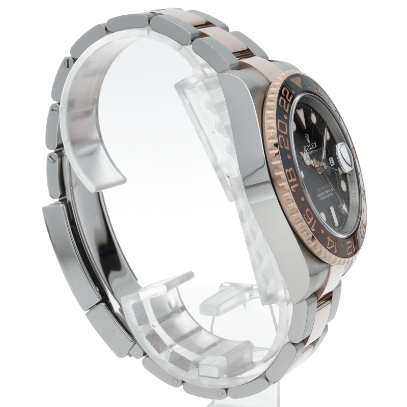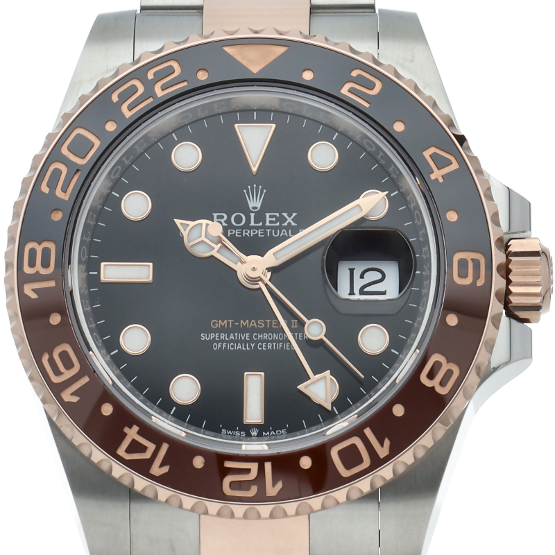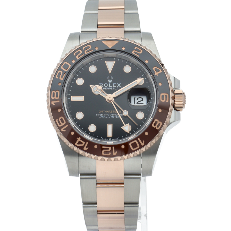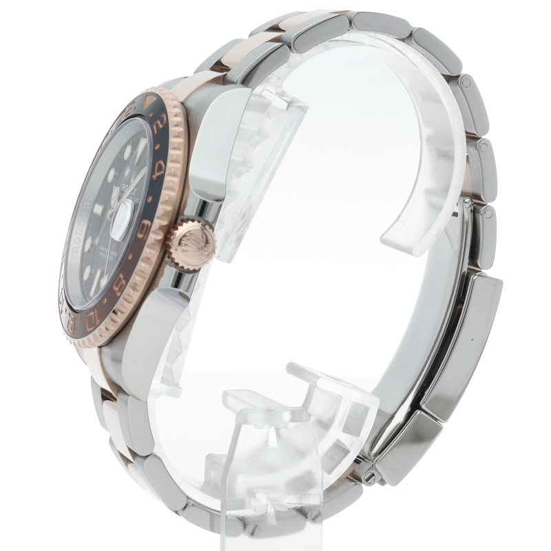 セラクロムベゼルでのGMTマスター2。ロレックスの最新ムーブメント「Cal.3285」を搭載しており、エネルギー効率が最適化されたクロナジー脱進機、テンプを衝撃から守る為の耐震装置パラフレックス ショック・アブソーバそして70時間ものロングパワーリザーブとロレックスの最新技術を駆使したムーブメントになっています。