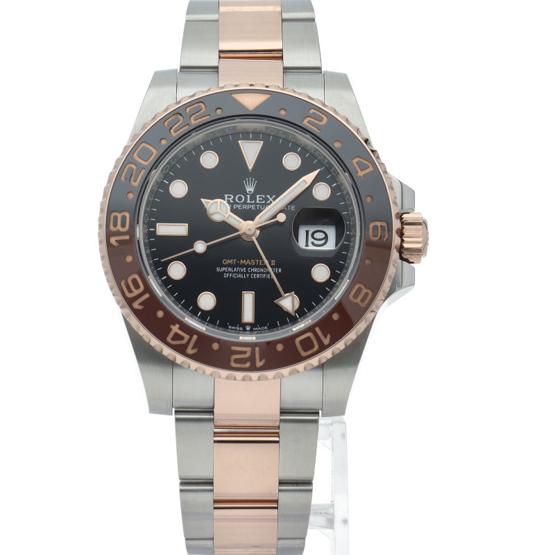セラクロムベゼルでのGMTマスター2。ロレックスの最新ムーブメント「Cal.3285」を搭載しており、エネルギー効率が最適化されたクロナジー脱進機、テンプを衝撃から守る為の耐震装置パラフレックス ショック・アブソーバそして70時間ものロングパワーリザーブとロレックスの最新技術を駆使したムーブメントになっています。