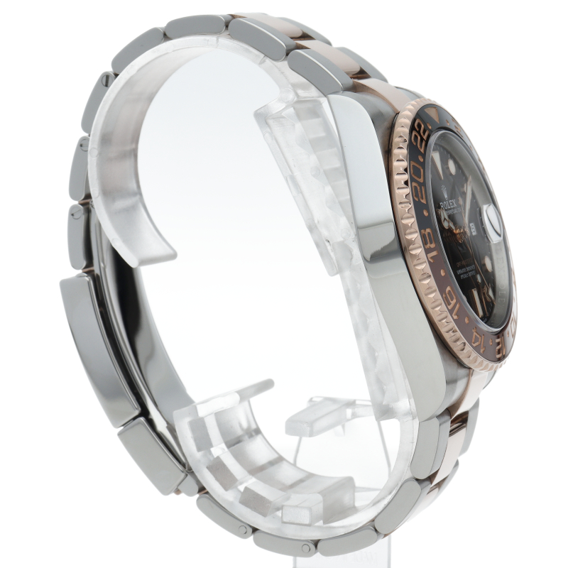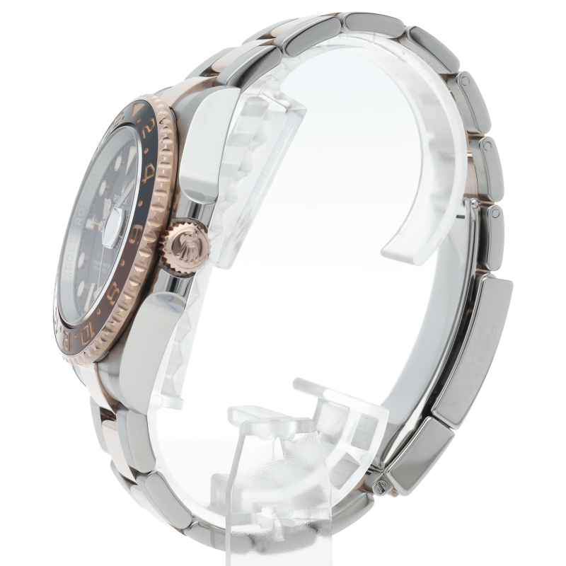 セラクロムベゼルでのGMTマスター2。ロレックスの最新ムーブメント「Cal.3285」を搭載しており、エネルギー効率が最適化されたクロナジー脱進機、テンプを衝撃から守る為の耐震装置パラフレックス ショック・アブソーバそして70時間ものロングパワーリザーブとロレックスの最新技術を駆使したムーブメントになっています。