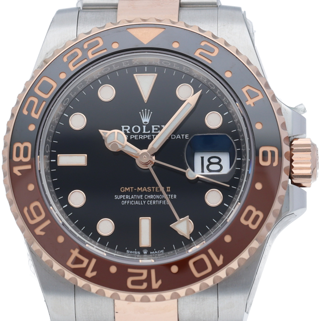 セラクロムベゼルでのGMTマスター2。ロレックスの最新ムーブメント「Cal.3285」を搭載しており、エネルギー効率が最適化されたクロナジー脱進機、テンプを衝撃から守る為の耐震装置パラフレックス ショック・アブソーバそして70時間ものロングパワーリザーブとロレックスの最新技術を駆使したムーブメントになっています。