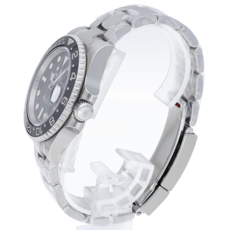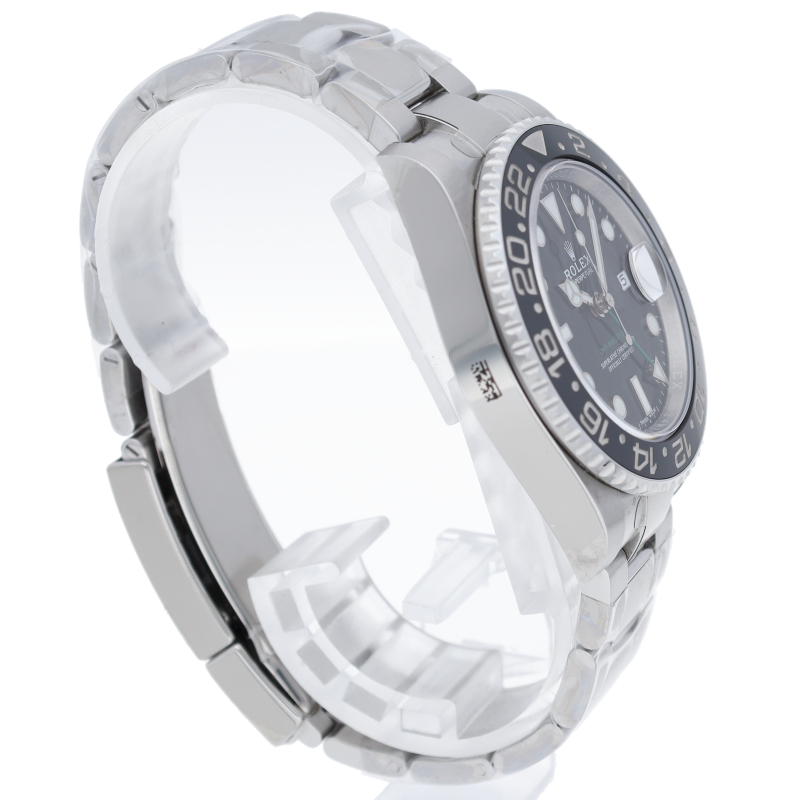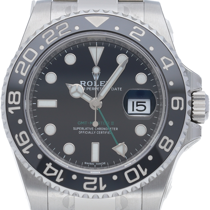 ロレックス人気モデル「GMTマスター2」。2019年に生産が終了となったセラミックの黒ベゼルは実用性はもちろん、これからの相場が楽しみな1本です。