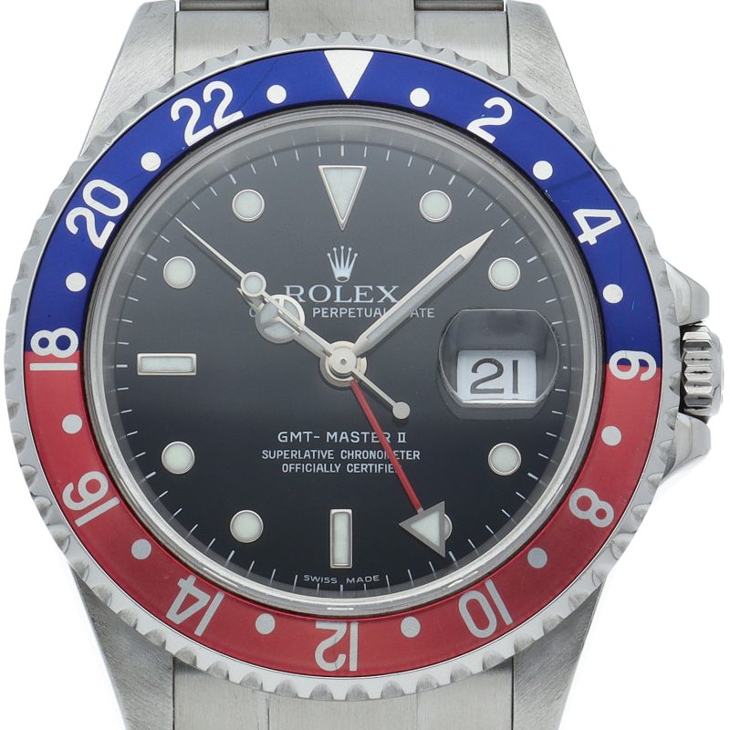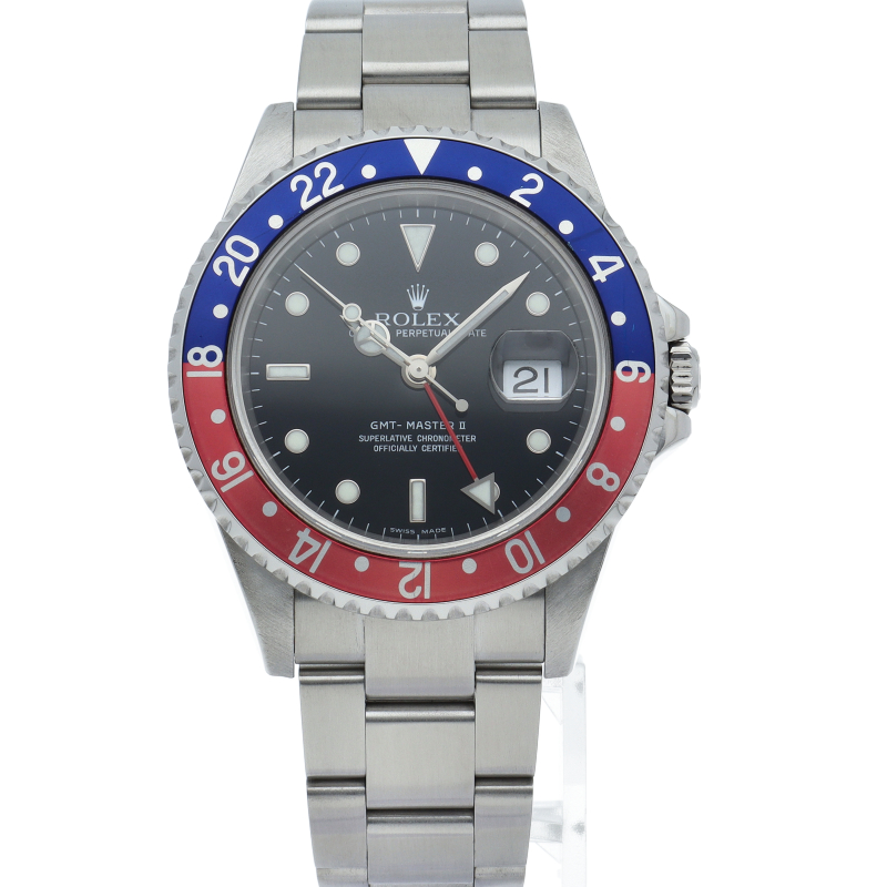GMTマスター2のモデルチェンジにともない生産終了となった「16710」。今でも根強い人気と安定した相場が魅力です。便利なGMT機能付で実用性の高い1本。