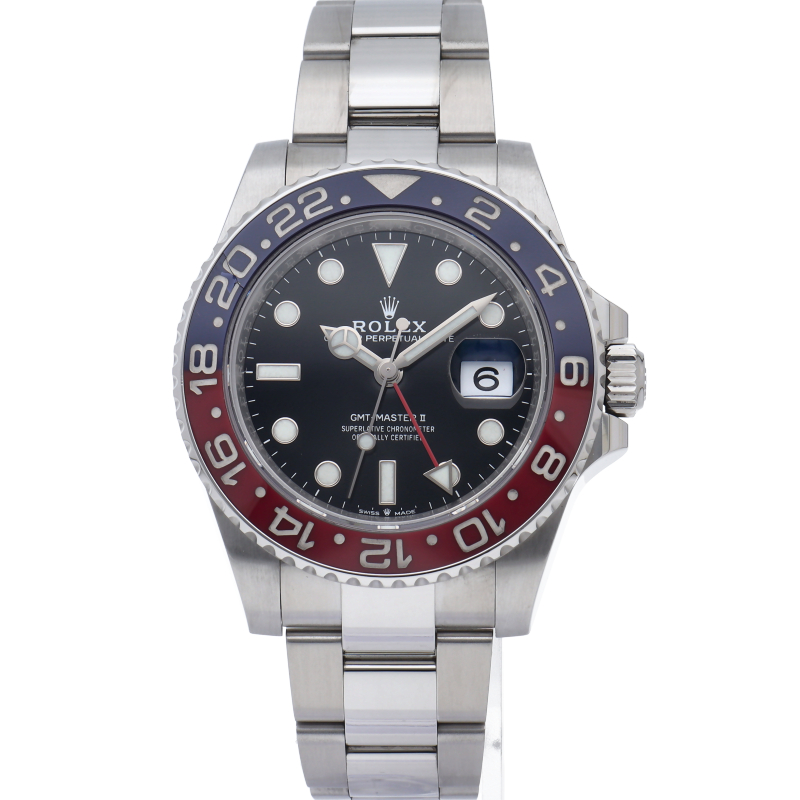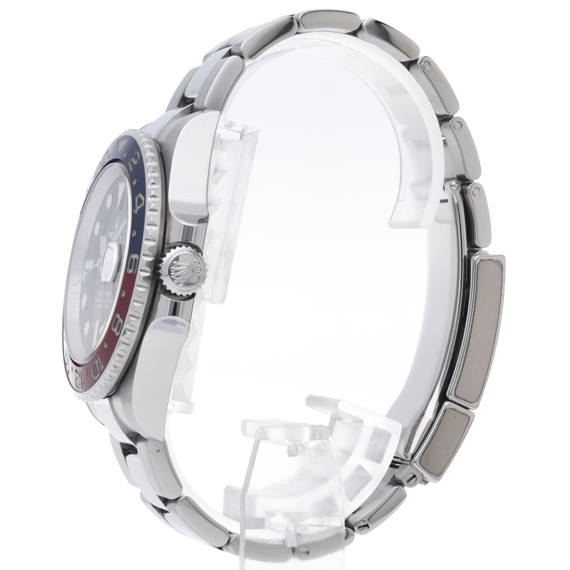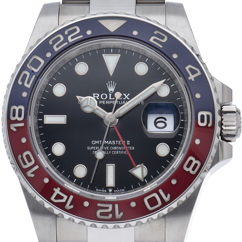 ロレックス人気モデル「GMTマスター2」のモデルチェンジした新型モデルです。セラミックベゼルにブレスやバックルも新しくなり高級感が更に増した1本です。