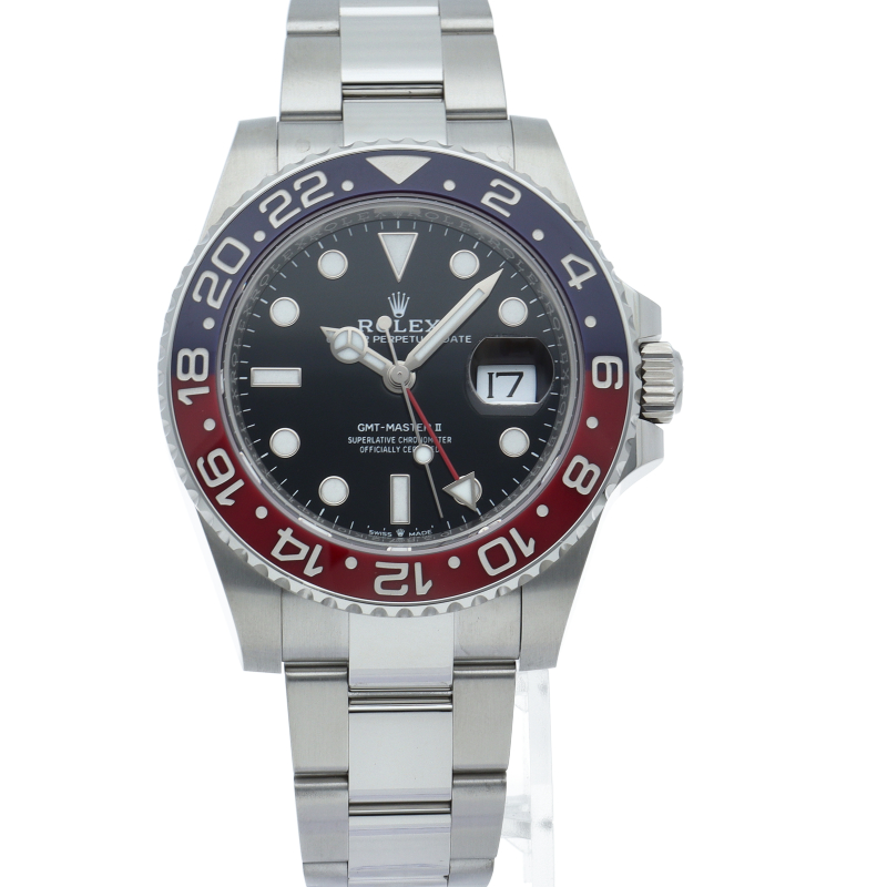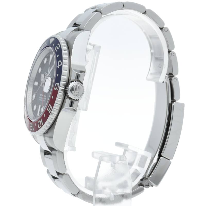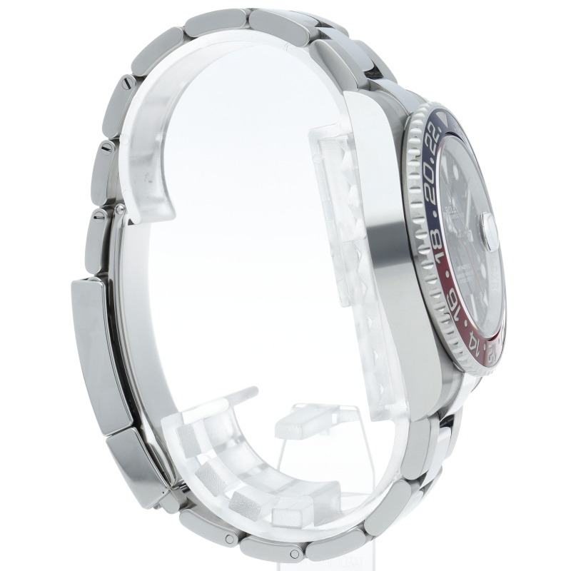 ロレックス人気モデル「GMTマスター2」のモデルチェンジした新型モデルです。セラミックベゼルにブレスやバックルも新しくなり高級感が更に増した1本です。