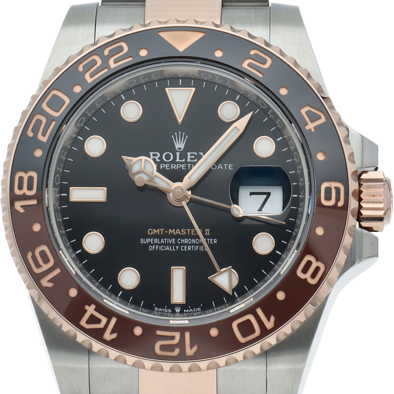 セラクロムベゼルでのGMTマスター2。ロレックスの最新ムーブメント「Cal.3285」を搭載しており、エネルギー効率が最適化されたクロナジー脱進機、テンプを衝撃から守る為の耐震装置パラフレックス ショック・アブソーバそして70時間ものロングパワーリザーブとロレックスの最新技術を駆使したムーブメントになっています。