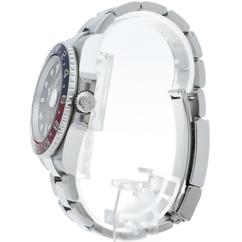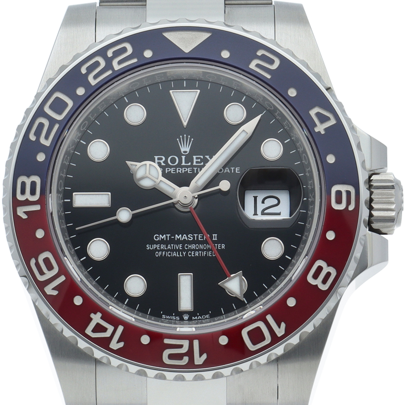 ロレックス人気モデル「GMTマスター2」のモデルチェンジした新型モデルです。セラミックベゼルにブレスやバックルも新しくなり高級感が更に増した1本です。