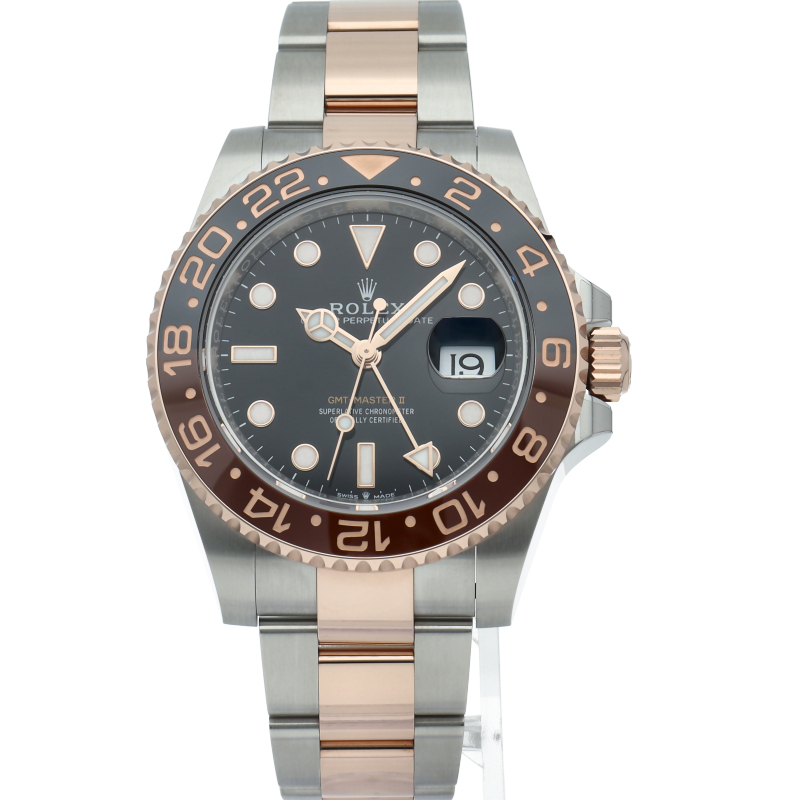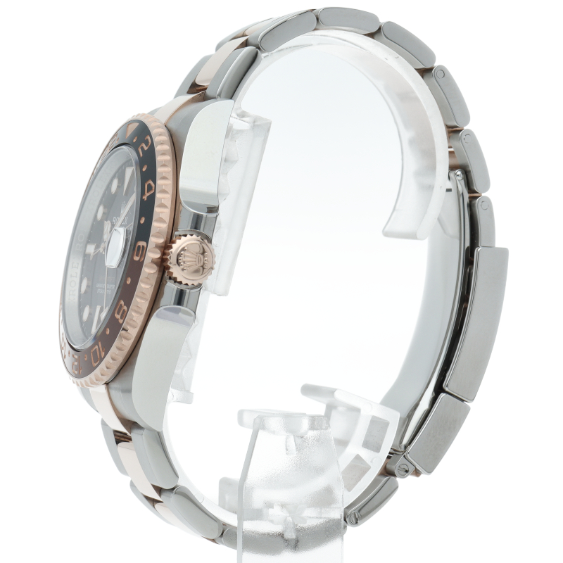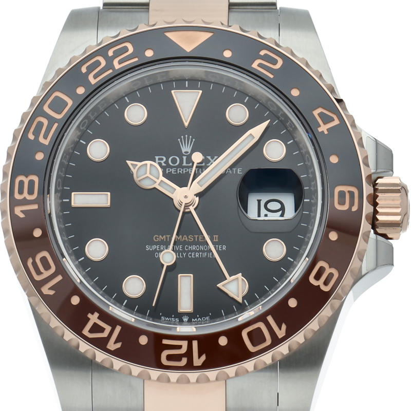 セラクロムベゼルでのGMTマスター2。ロレックスの最新ムーブメント「Cal.3285」を搭載しており、エネルギー効率が最適化されたクロナジー脱進機、テンプを衝撃から守る為の耐震装置パラフレックス ショック・アブソーバそして70時間ものロングパワーリザーブとロレックスの最新技術を駆使したムーブメントになっています。