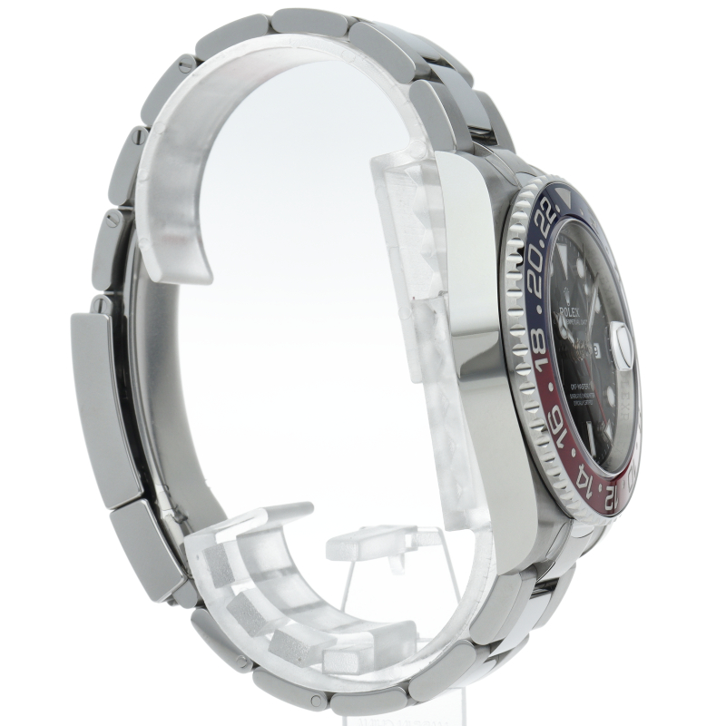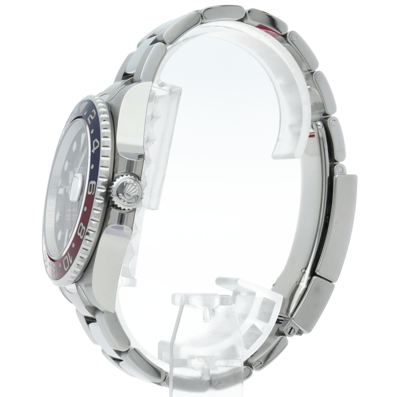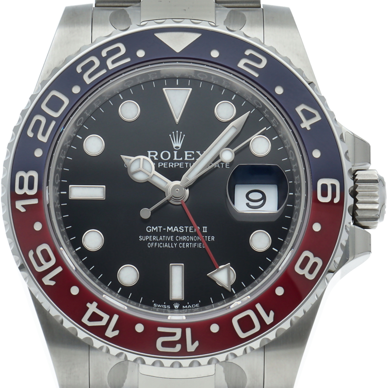ロレックス人気モデル「GMTマスター2」のモデルチェンジした新型モデルです。セラミックベゼルにブレスやバックルも新しくなり高級感が更に増した1本です。