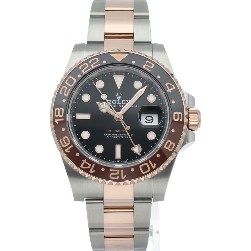 セラクロムベゼルでのGMTマスター2。ロレックスの最新ムーブメント「Cal.3285」を搭載しており、エネルギー効率が最適化されたクロナジー脱進機、テンプを衝撃から守る為の耐震装置パラフレックス ショック・アブソーバそして70時間ものロングパワーリザーブとロレックスの最新技術を駆使したムーブメントになっています。