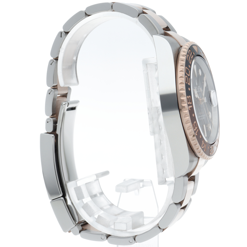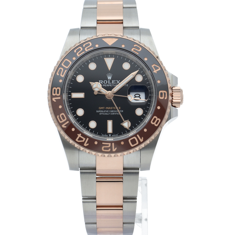 セラクロムベゼルでのGMTマスター2。ロレックスの最新ムーブメント「Cal.3285」を搭載しており、エネルギー効率が最適化されたクロナジー脱進機、テンプを衝撃から守る為の耐震装置パラフレックス ショック・アブソーバそして70時間ものロングパワーリザーブとロレックスの最新技術を駆使したムーブメントになっています。
