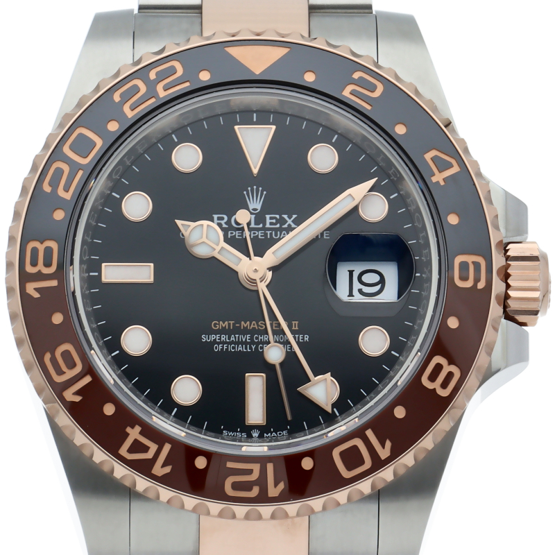 セラクロムベゼルでのGMTマスター2。ロレックスの最新ムーブメント「Cal.3285」を搭載しており、エネルギー効率が最適化されたクロナジー脱進機、テンプを衝撃から守る為の耐震装置パラフレックス ショック・アブソーバそして70時間ものロングパワーリザーブとロレックスの最新技術を駆使したムーブメントになっています。