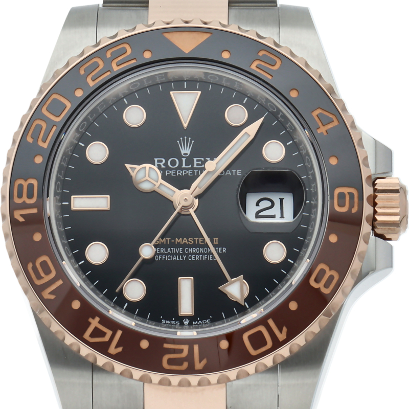 セラクロムベゼルでのGMTマスター2。ロレックスの最新ムーブメント「Cal.3285」を搭載しており、エネルギー効率が最適化されたクロナジー脱進機、テンプを衝撃から守る為の耐震装置パラフレックス ショック・アブソーバそして70時間ものロングパワーリザーブとロレックスの最新技術を駆使したムーブメントになっています。