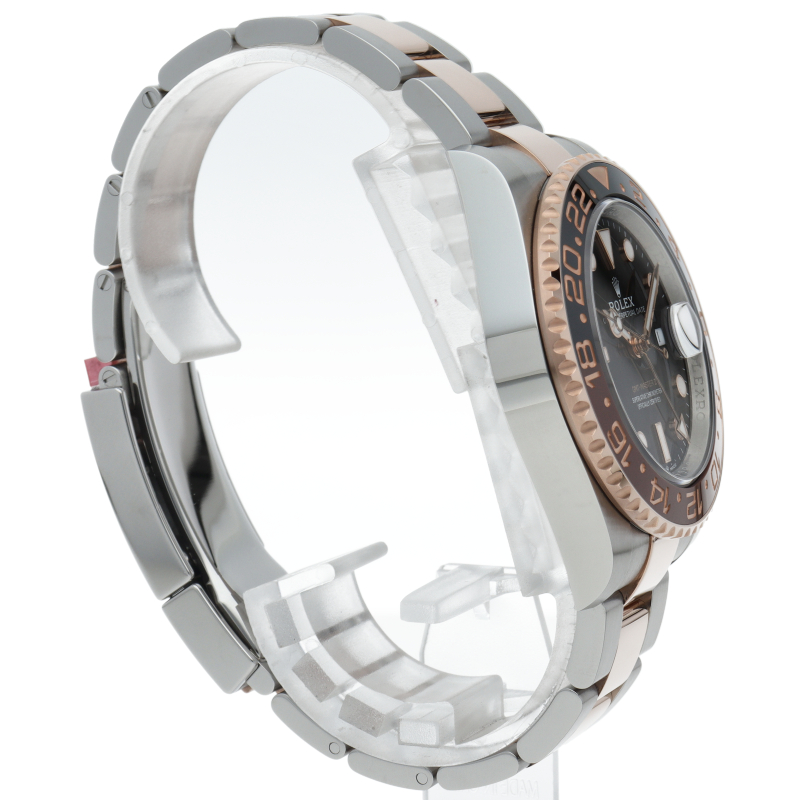 セラクロムベゼルでのGMTマスター2。ロレックスの最新ムーブメント「Cal.3285」を搭載しており、エネルギー効率が最適化されたクロナジー脱進機、テンプを衝撃から守る為の耐震装置パラフレックス ショック・アブソーバそして70時間ものロングパワーリザーブとロレックスの最新技術を駆使したムーブメントになっています。