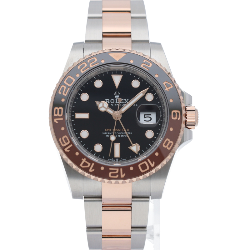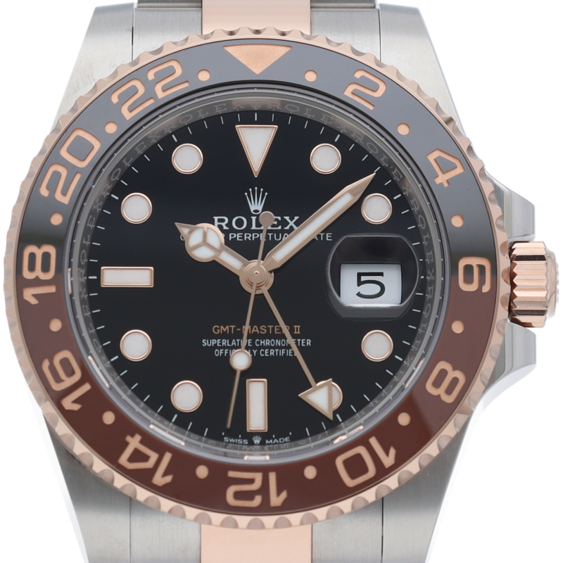 セラクロムベゼルでのGMTマスター2。ロレックスの最新ムーブメント「Cal.3285」を搭載しており、エネルギー効率が最適化されたクロナジー脱進機、テンプを衝撃から守る為の耐震装置パラフレックス ショック・アブソーバそして70時間ものロングパワーリザーブとロレックスの最新技術を駆使したムーブメントになっています。