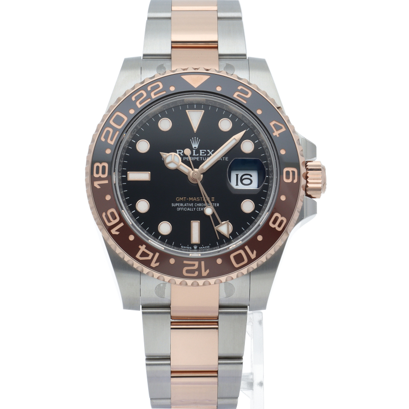 セラクロムベゼルでのGMTマスター2。ロレックスの最新ムーブメント「Cal.3285」を搭載しており、エネルギー効率が最適化されたクロナジー脱進機、テンプを衝撃から守る為の耐震装置パラフレックス ショック・アブソーバそして70時間ものロングパワーリザーブとロレックスの最新技術を駆使したムーブメントになっています。