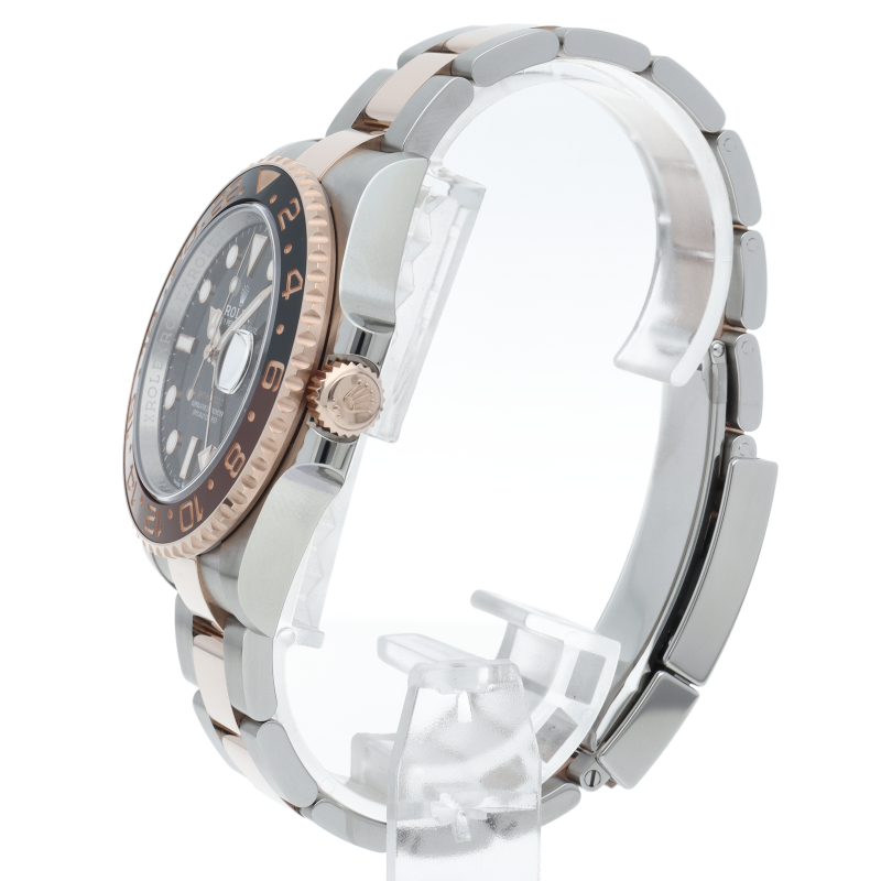 セラクロムベゼルでのGMTマスター2。ロレックスの最新ムーブメント「Cal.3285」を搭載しており、エネルギー効率が最適化されたクロナジー脱進機、テンプを衝撃から守る為の耐震装置パラフレックス ショック・アブソーバそして70時間ものロングパワーリザーブとロレックスの最新技術を駆使したムーブメントになっています。
