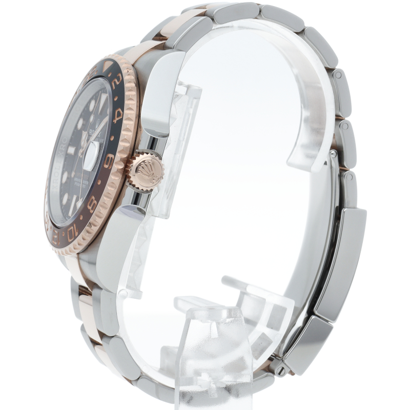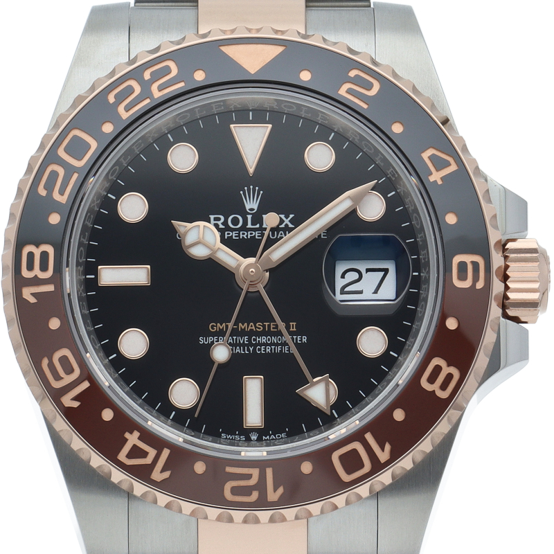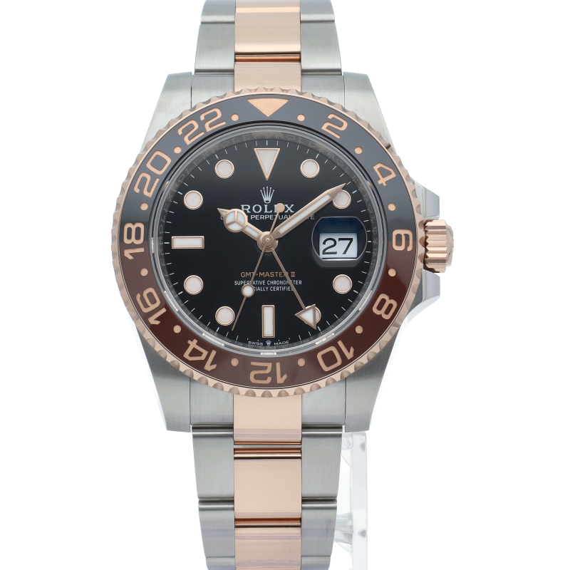 セラクロムベゼルでのGMTマスター2。ロレックスの最新ムーブメント「Cal.3285」を搭載しており、エネルギー効率が最適化されたクロナジー脱進機、テンプを衝撃から守る為の耐震装置パラフレックス ショック・アブソーバそして70時間ものロングパワーリザーブとロレックスの最新技術を駆使したムーブメントになっています。