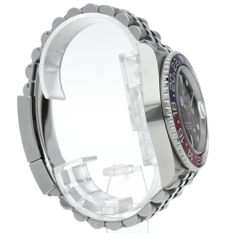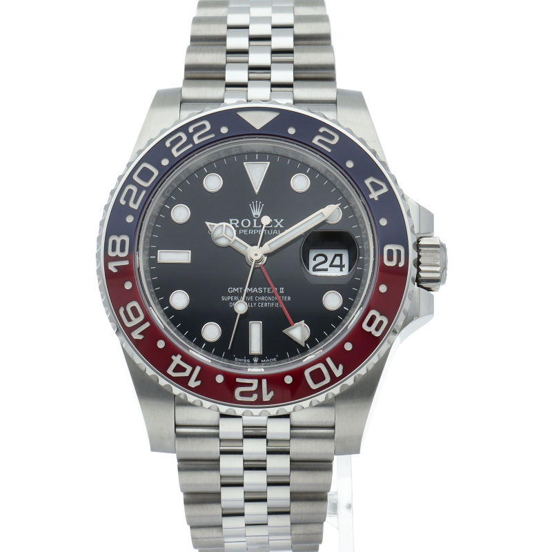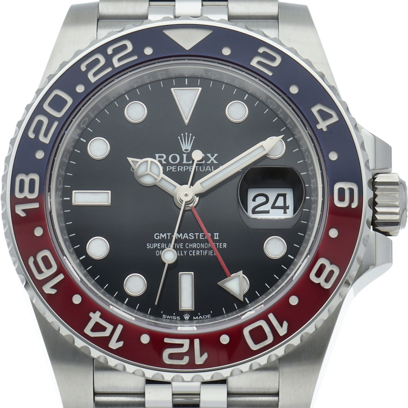 ロレックス人気モデル「GMTマスター2」のモデルチェンジした新型モデルです。セラミックベゼルにブレスやバックルも新しくなり高級感が更に増した1本です。