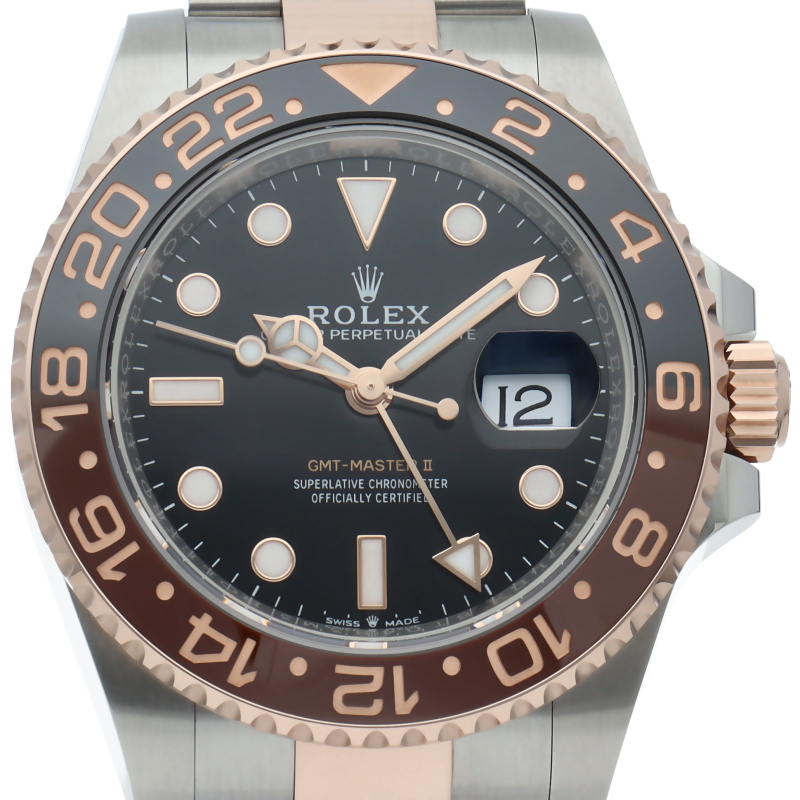 セラクロムベゼルでのGMTマスター2。ロレックスの最新ムーブメント「Cal.3285」を搭載しており、エネルギー効率が最適化されたクロナジー脱進機、テンプを衝撃から守る為の耐震装置パラフレックス ショック・アブソーバそして70時間ものロングパワーリザーブとロレックスの最新技術を駆使したムーブメントになっています。