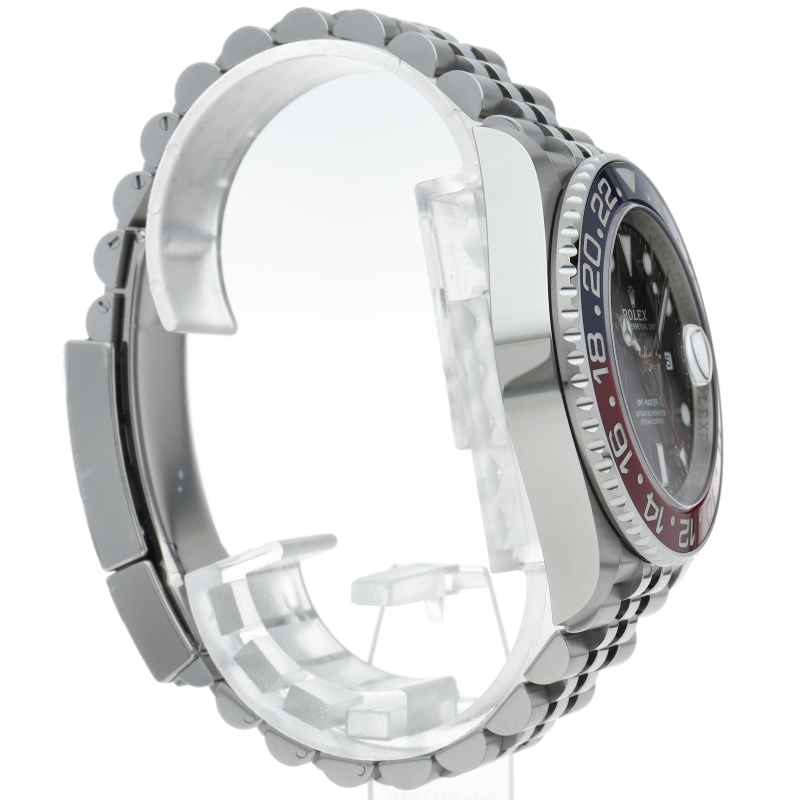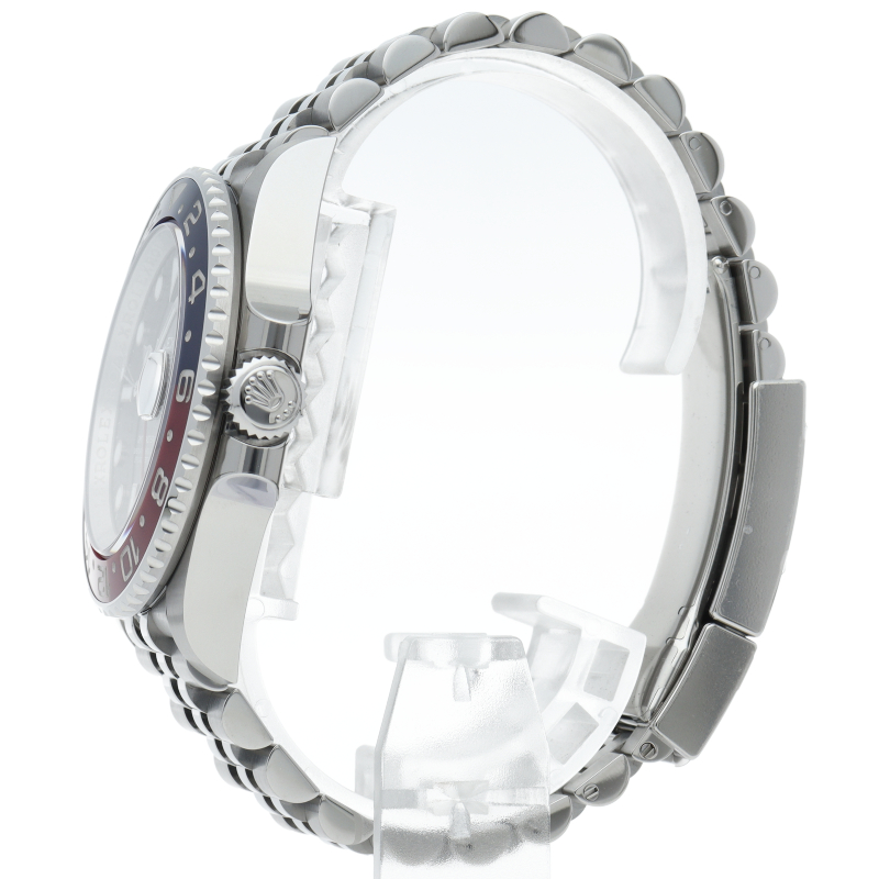 ロレックス人気モデル「GMTマスター2」のモデルチェンジした新型モデルです。セラミックベゼルにブレスやバックルも新しくなり高級感が更に増した1本です。