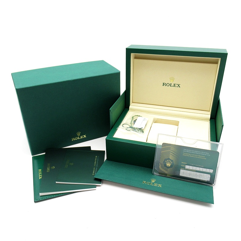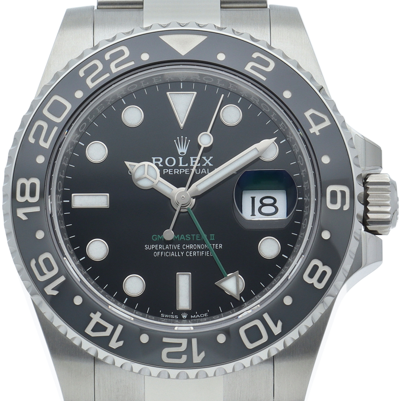 2024年に新たに加わった、グレー/ブラックベゼルにステンレスのケース/オイスターブレスレットの【126710GRNR GMTマスターII】。キャリバー3285はロレックスが特許を取得したクロナジーエスケープメントを採用し、高いエネルギー効率により70時間ものパワーリザーブを誇ります。