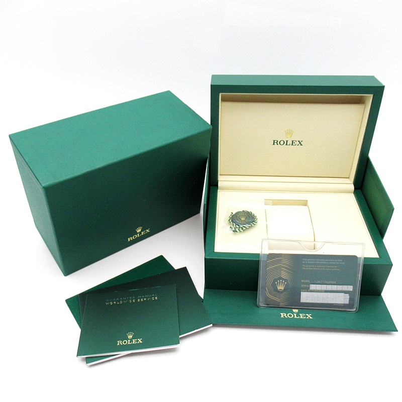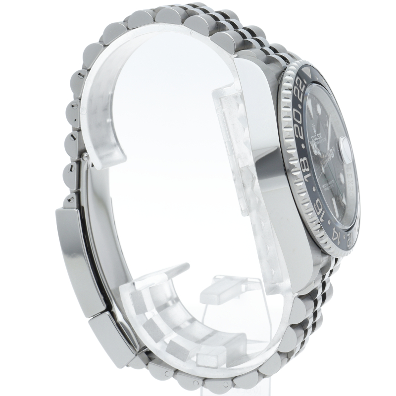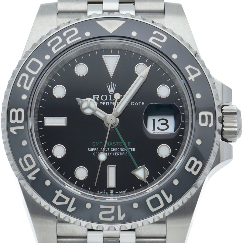 2024年に新たに加わった、グレー/ブラックベゼルにステンレスのケース/オイスターブレスレットの【126710GRNR GMTマスターII】。キャリバー3285はロレックスが特許を取得したクロナジーエスケープメントを採用し、高いエネルギー効率により70時間ものパワーリザーブを誇ります。