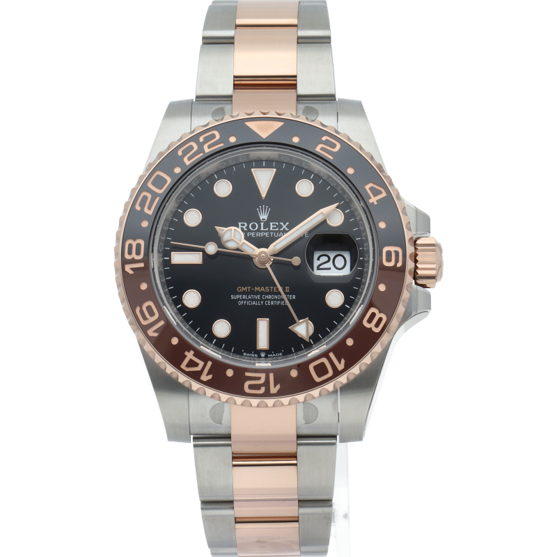 セラクロムベゼルでのGMTマスター2。ロレックスの最新ムーブメント「Cal.3285」を搭載しており、エネルギー効率が最適化されたクロナジー脱進機、テンプを衝撃から守る為の耐震装置パラフレックス ショック・アブソーバそして70時間ものロングパワーリザーブとロレックスの最新技術を駆使したムーブメントになっています。