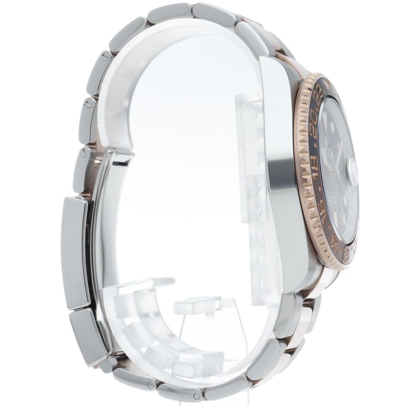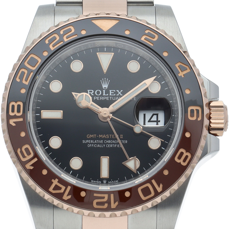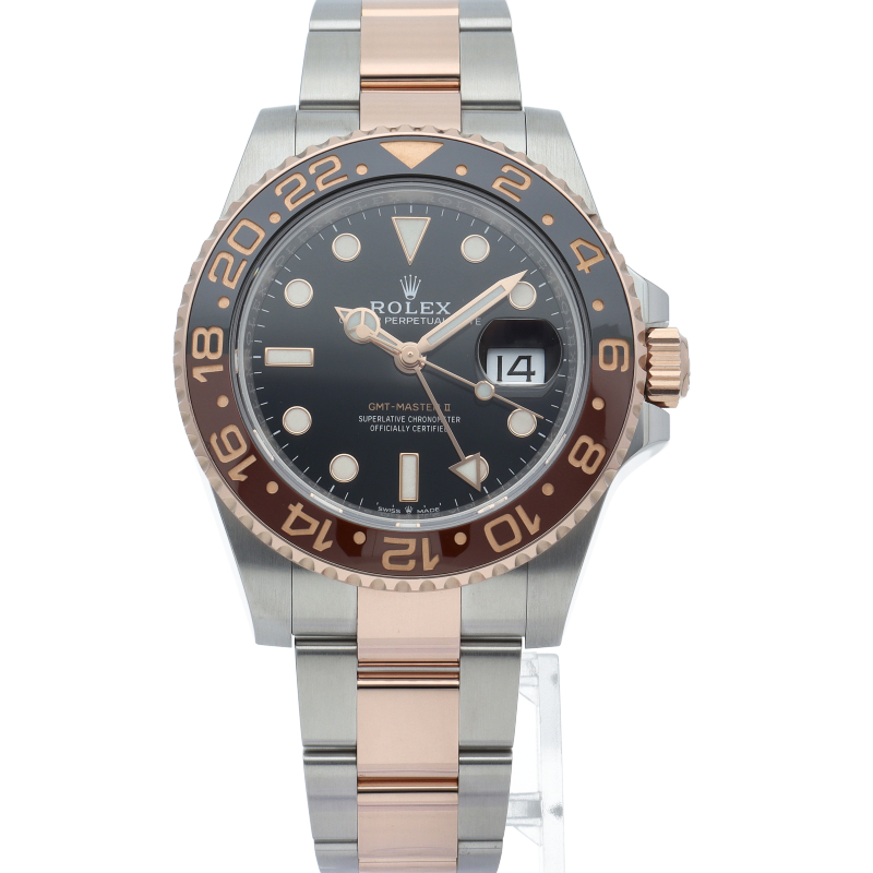 セラクロムベゼルでのGMTマスター2。ロレックスの最新ムーブメント「Cal.3285」を搭載しており、エネルギー効率が最適化されたクロナジー脱進機、テンプを衝撃から守る為の耐震装置パラフレックス ショック・アブソーバそして70時間ものロングパワーリザーブとロレックスの最新技術を駆使したムーブメントになっています。