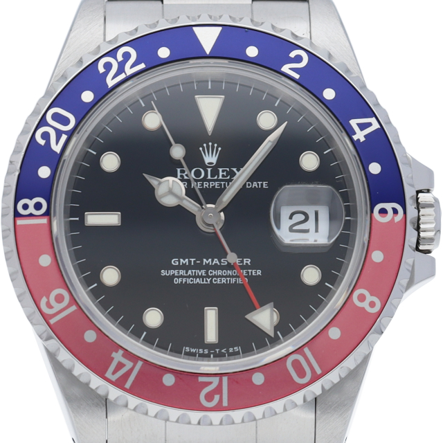 GMTマスター2のデビューにともない生産終了となった「16700」。今でも根強い人気と安定した相場が魅力です。便利なGMT機能付で実用性の高い1本。