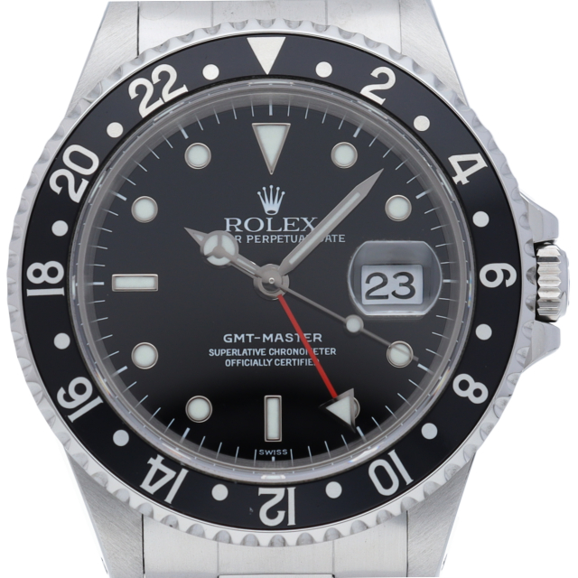 GMTマスター2のデビューにともない生産終了となった「16700」。今でも根強い人気と安定した相場が魅力です。便利なGMT機能付で実用性の高い1本。便利なGMT機能付で実用性の高い1本。最終シリアルのオンリースイス表記です。