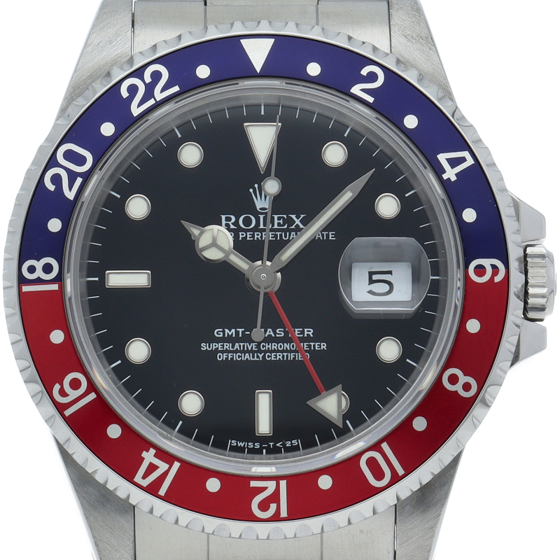 GMTマスター2のデビューにともない生産終了となった「16700」。今でも根強い人気と安定した相場が魅力です。便利なGMT機能付で実用性の高い1本。
