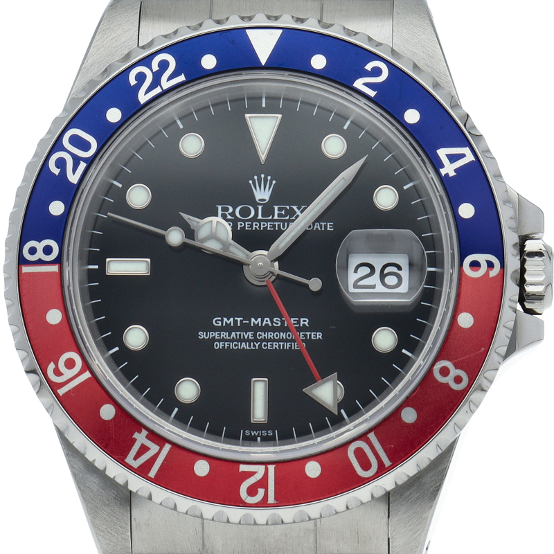 GMTマスター2のデビューにともない生産終了となった「16700」。今でも根強い人気と安定した相場が魅力です。便利なGMT機能付で実用性の高い1本。