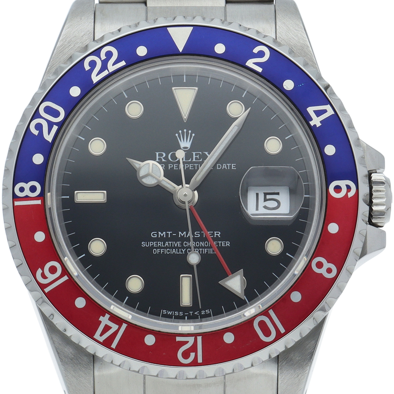 GMTマスター2のデビューにともない生産終了となった「16700」。今でも根強い人気と安定した相場が魅力です。便利なGMT機能付で実用性の高い1本。