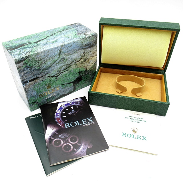 GMTマスター2のモデルチェンジにともない生産終了となった「16710」。今でも根強い人気と安定した相場が魅力です。便利なGMT機能付で実用性の高い1本。