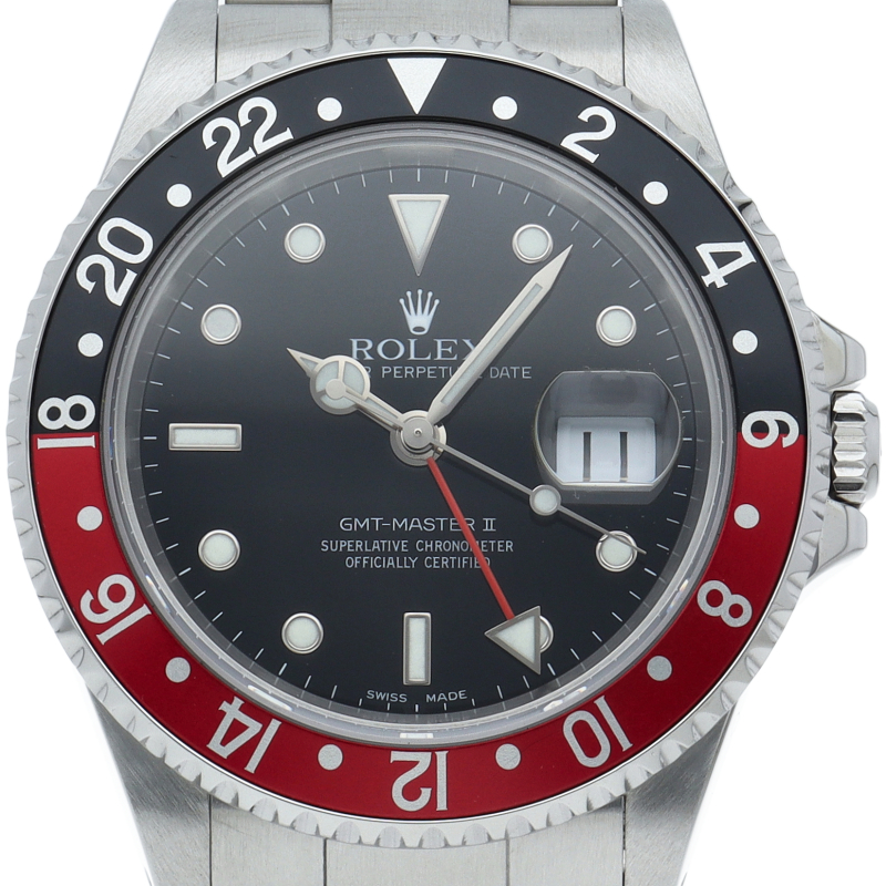 GMTマスター2のモデルチェンジにともない生産終了となった「16710」。今でも根強い人気と安定した相場が魅力です。便利なGMT機能付で実用性の高い1本。