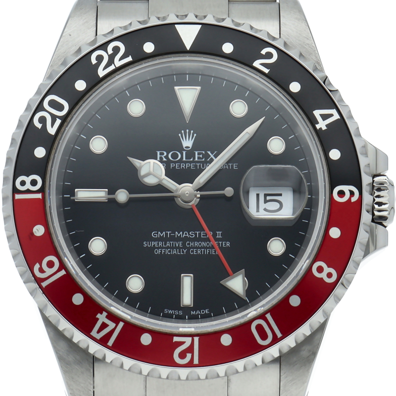 GMTマスター2のモデルチェンジにともない生産終了となった「16710」。今でも根強い人気と安定した相場が魅力です。便利なGMT機能付で実用性の高い1本。