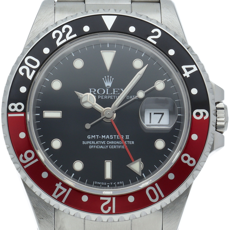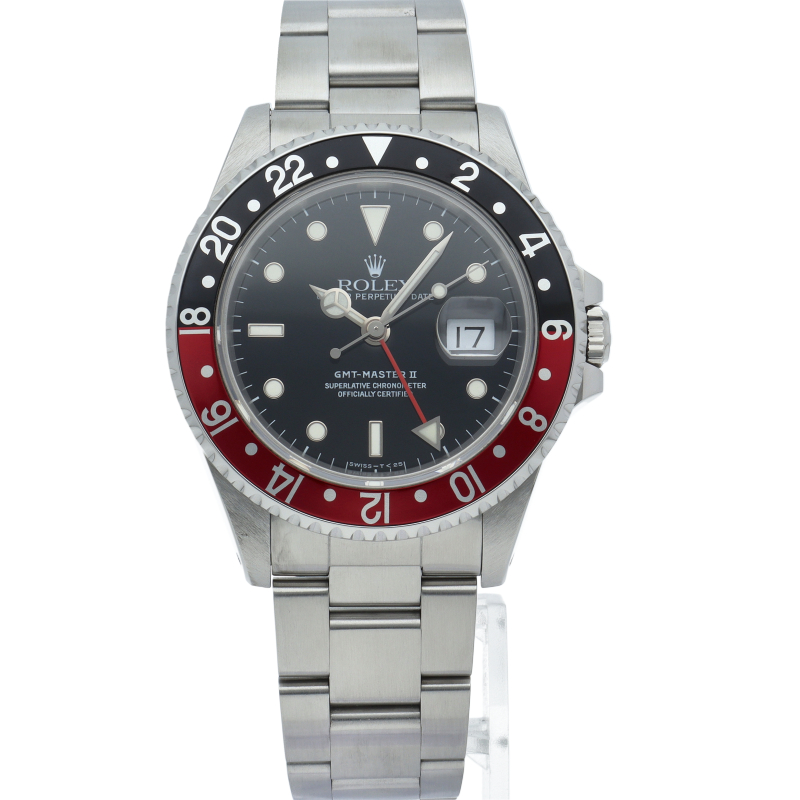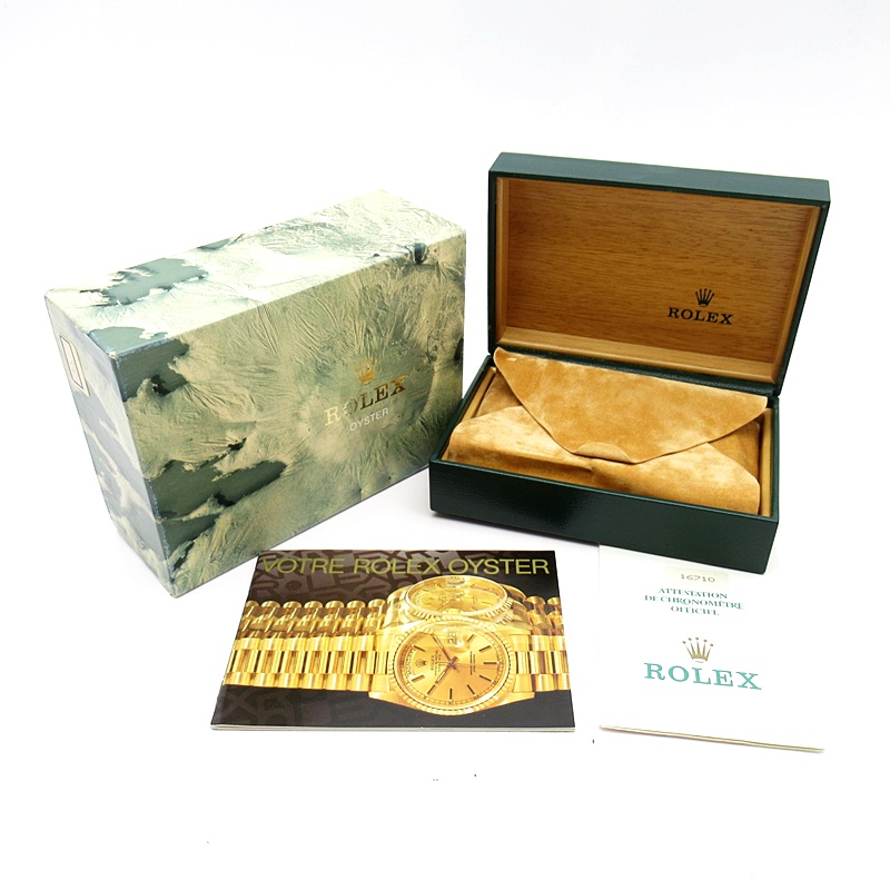 GMTマスター2のモデルチェンジにともない生産終了となった「16710」。今でも根強い人気と安定した相場が魅力です。便利なGMT機能付で実用性の高い1本。