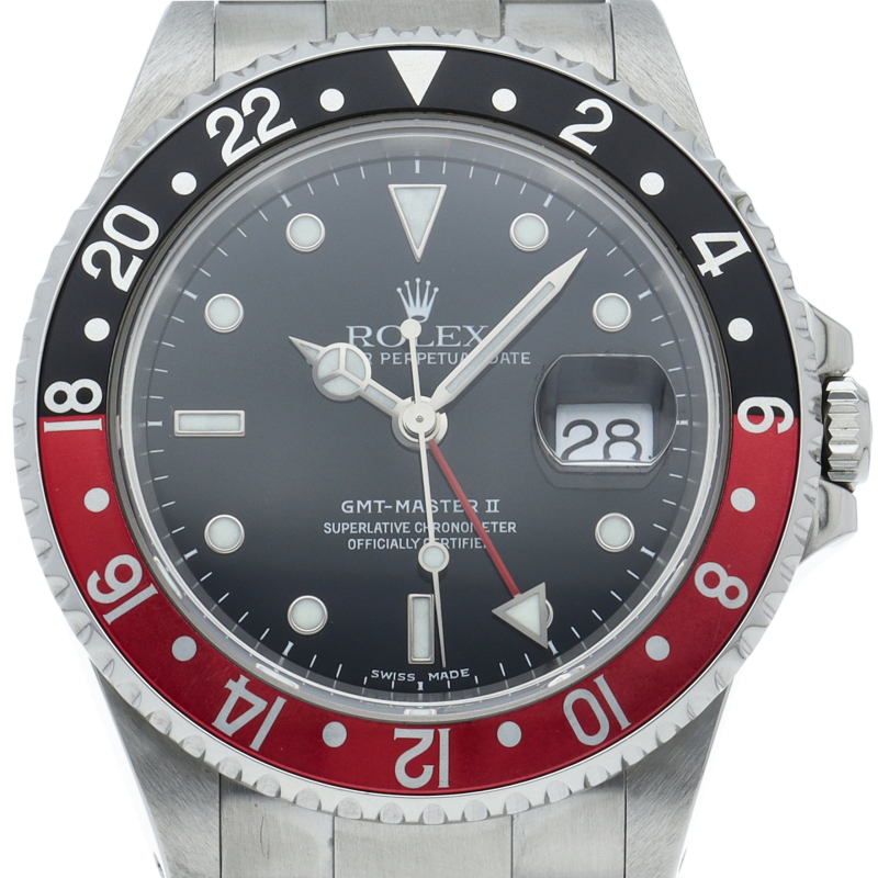 GMTマスター2のモデルチェンジにともない生産終了となった「16710」。今でも根強い人気と安定した相場が魅力です。便利なGMT機能付で実用性の高い1本。