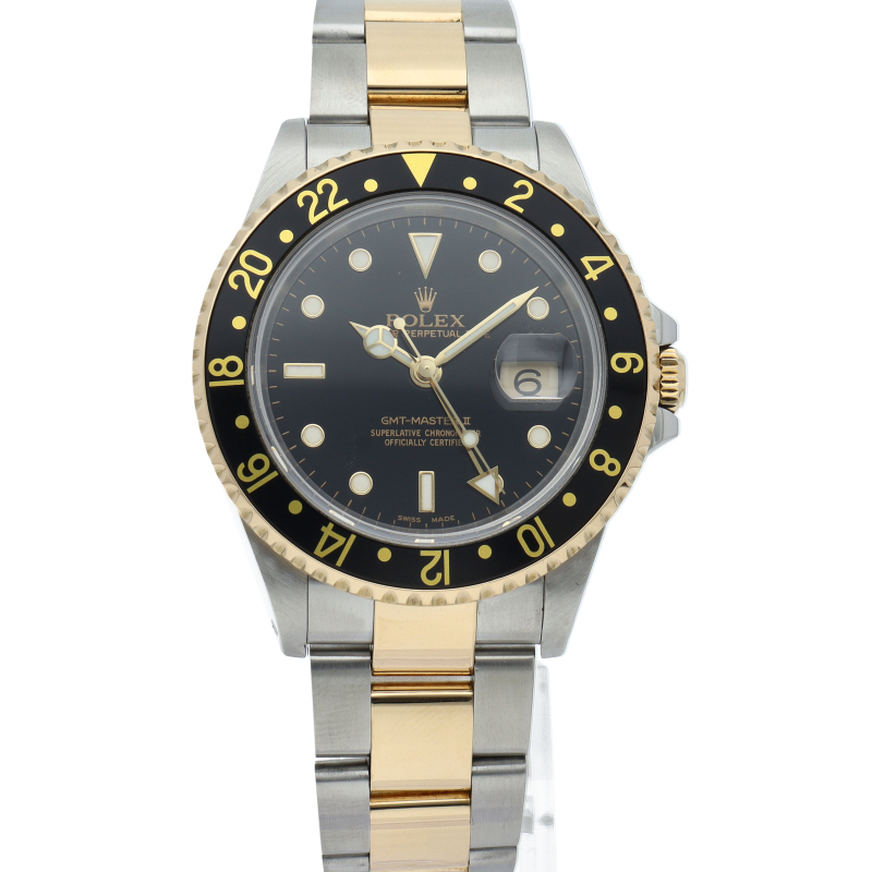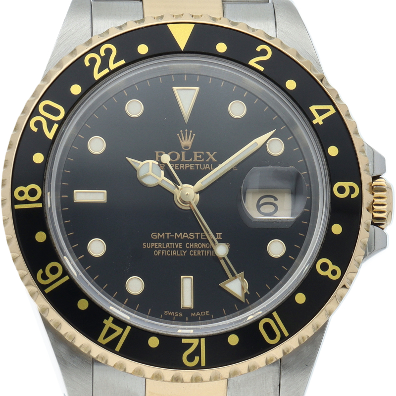 GMTマスター2のモデルチェンジにともない生産終了となった「16713」。今でも根強い人気と安定した相場が魅力です。便利なGMT機能付で実用性の高い1本。高級感溢れるコンビモデルです。黒ベゼル。