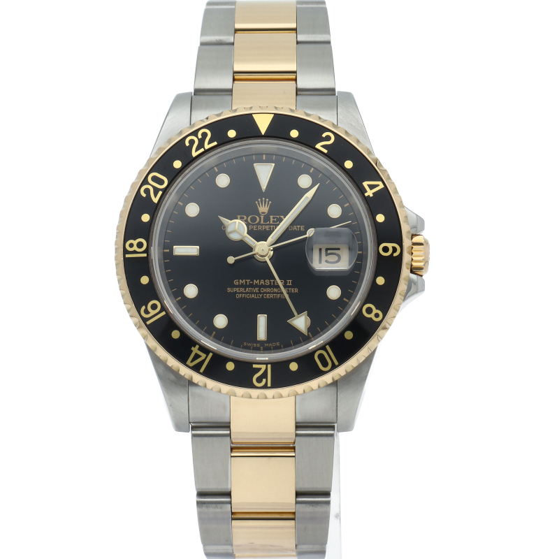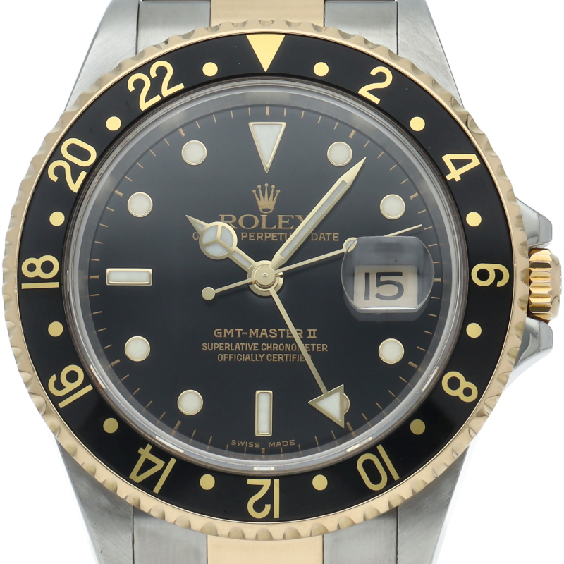 スポーティーでありながらシックさも兼ね備えたブラウンの「GMTマスター2」。現行ラインにはない色使いがロレックスファンを魅了します。高級感溢れるコンビモデルです。