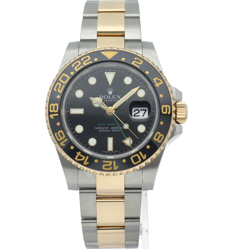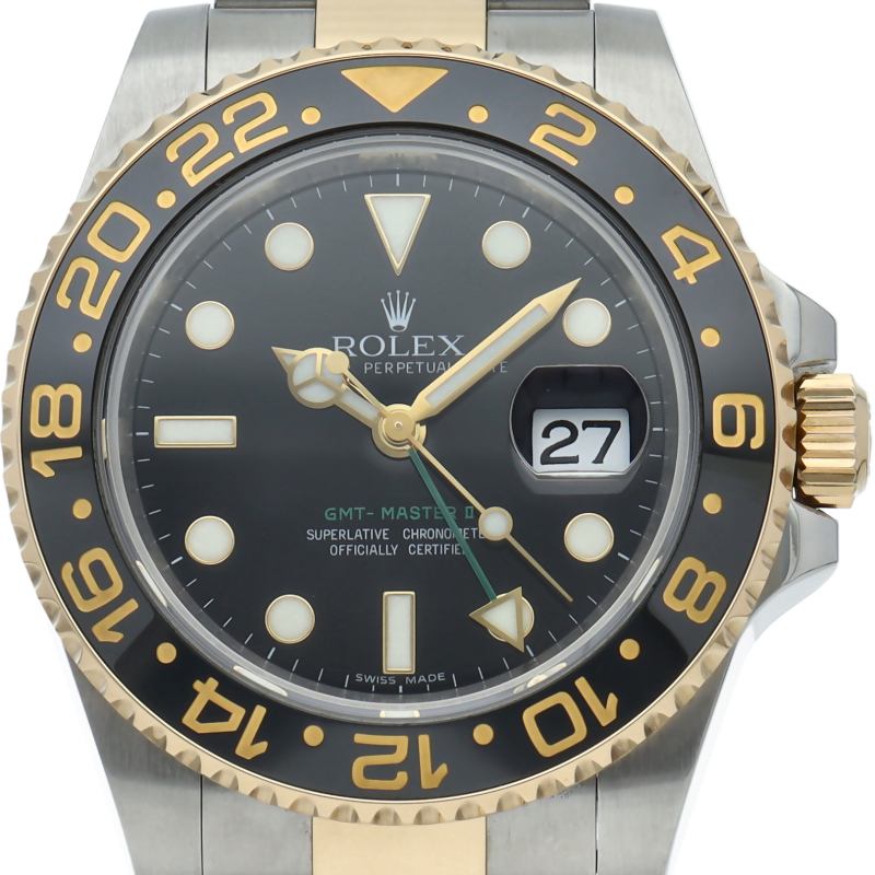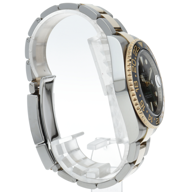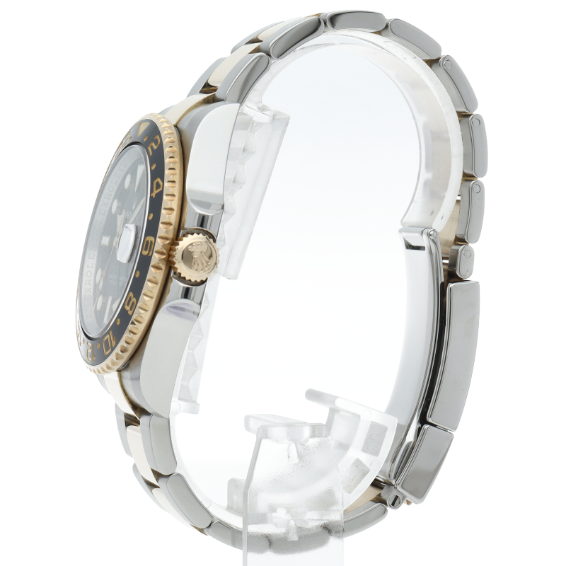 ロレックス人気モデル「GMTマスター2」のモデルチェンジにともない生産終了となった116713LNです。ワンランク上のイエローゴールド仕様のコンビモデルです。