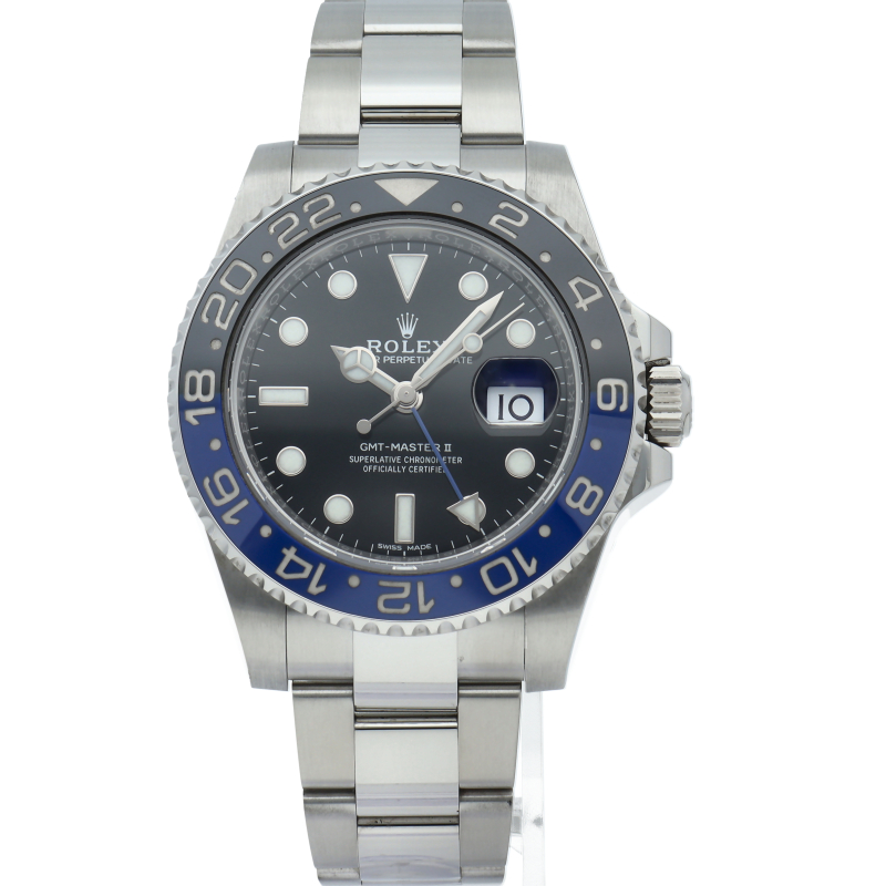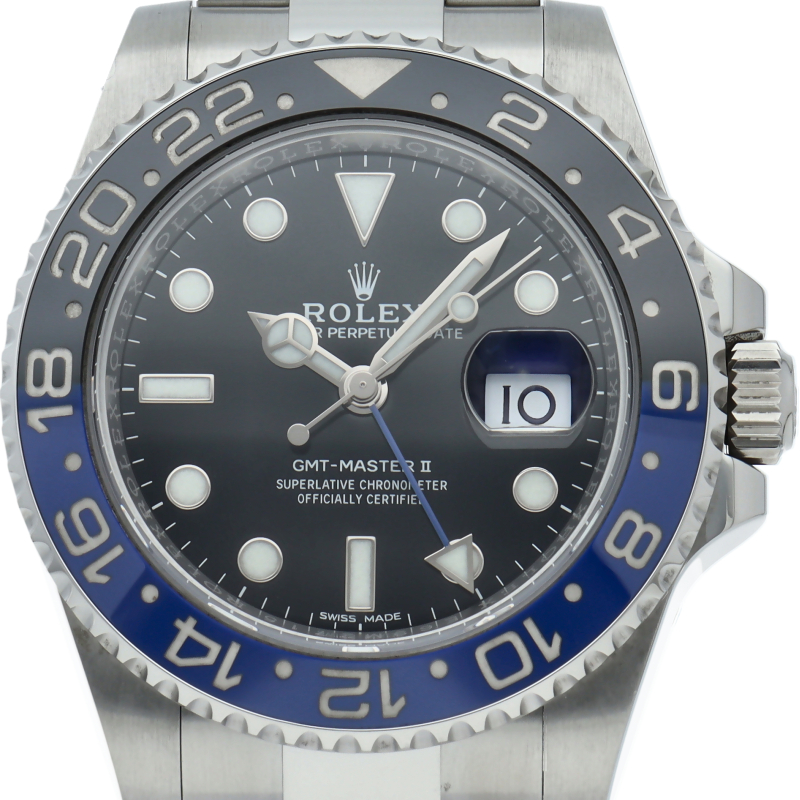 3ヶ国の時間を把握できるGMT機能を備えたロレックス唯一のパイロットウォッチであるGMTマスターII。視認性UPの為に大型化されたインデックス、耐磁性能に優れたパラクロムヒゲゼンマイ、ならびに頑強なケース、ブレスという優れた機能と耐久性を兼ね備えた人気モデルです。