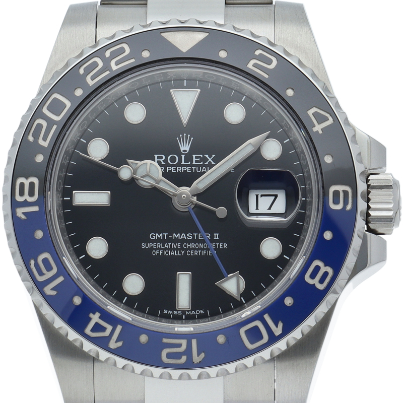 3ヶ国の時間を把握できるGMT機能を備えたロレックス唯一のパイロットウォッチであるGMTマスターII。視認性UPの為に大型化されたインデックス、耐磁性能に優れたパラクロムヒゲゼンマイ、ならびに頑強なケース、ブレスという優れた機能と耐久性を兼ね備えた人気モデルです。